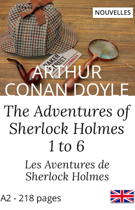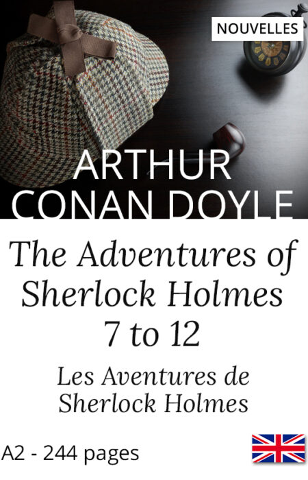 Recueil bilingue de nouvelles Sherlock Holmes (7-12). Livre bilingue interactif pour lire en V.O. plus facilement. Biographie d’Arthur C. Doyle et résumés.